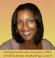 Hello! My name is Dequiana Brooks Jackson, MBA, and I am a small business marketing coach who specializes in helping women entrepreneurs get out of their own way and use solid marketing strategies to reach their ideal clients. I work with business owners who may have experienced the following: they are passionate about their business, but something about the marketing just isn't working. They know they have a unique gift that would benefit others, but are having trouble attracting clients who want what they have to offer and are willing to pay for it. If you're ready to change that, I will show you how.